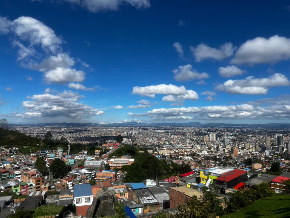 Vista desde la Ermita de la Peña hacia Bogotá. La cruz se sitúa sobre una gran laja.