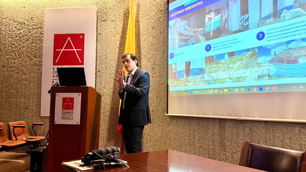 Desde el Auditorio Gabriel Serrano Camargo, Parra presentó un caso que ilustra el giro en la gestión institucional: la atención de un incidente en el barrio La Candelaria que comprometió la estructura de un inmueble patrimonial, luego de que un vehículo de recolección de basuras impactara uno de sus muros.