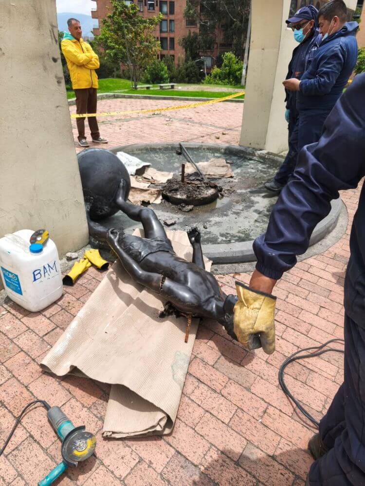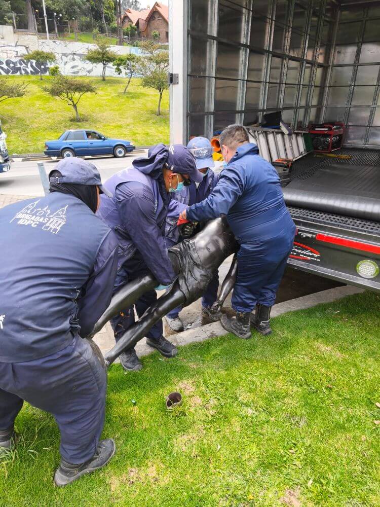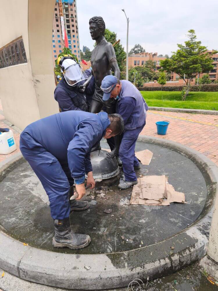 Ante esta situación, y tras el llamado de la Alcaldía Local de Suba, el Instituto realizó el desmonte preventivo de la pieza, con el fin de protegerla de mayores daños. La escultura fue trasladada a una de las sedes del IDPC, donde se adelantará su almacenamiento temporal y se iniciará el proceso técnico para su restauración, que incluirá la restitución de las piezas faltantes. Este proceso contempla la elaboración de un informe técnico detallado, la interposición de la denuncia correspondiente ante la Fiscalía General de la Nación y la gestión con la aseguradora, incluyendo la solicitud de cotizaciones para la intervención del bien.