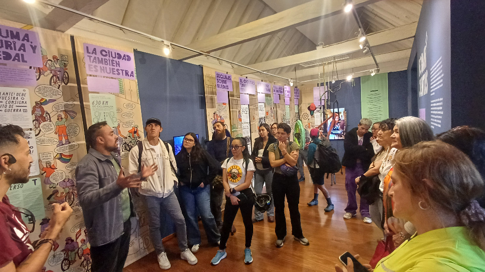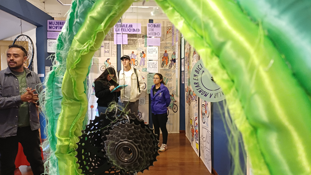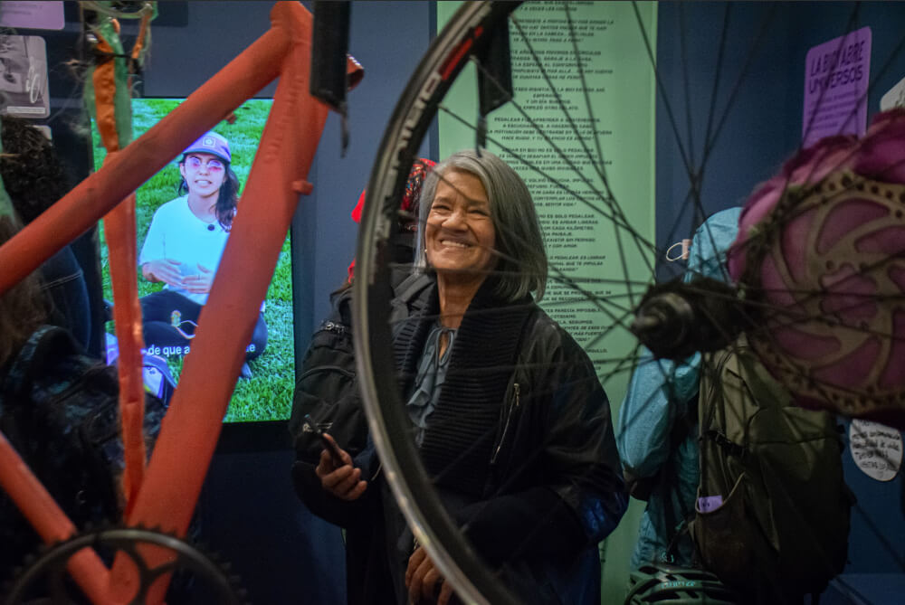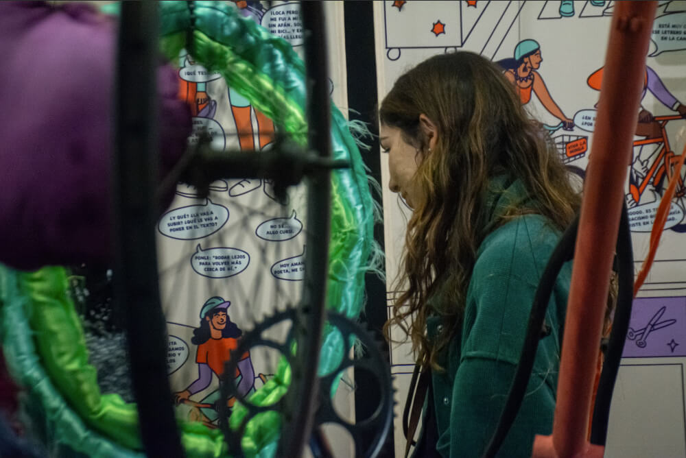 “Soy una mujer bogotana, emancipada por la bicicleta, por el trabajo y por la comunidad que se construye alrededor de la bici. Participé en varios talleres previos a la exposición, espacios que aportaron a su construcción y donde cada una compartió sus puntos de vista. Hoy, que ya está abierta al público, considero que es una exposición digna, enriquecedora y, lo más importante, que recoge las vivencias de mujeres que aman y viven por la bicicleta”.