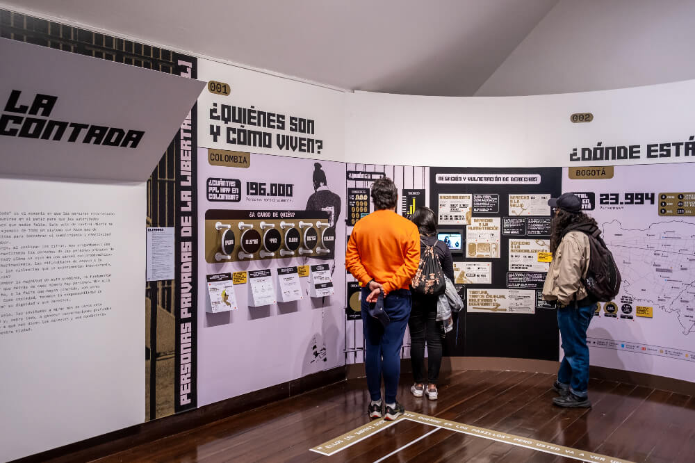 El nombre Pabellón Libertad —tomado de manera irónica de uno de los pabellones de la Cárcel Distrital de Varones y Anexo de Mujeres de Bogotá— propuso una reflexión directa sobre las libertades y los derechos dentro y fuera de prisión, invitando a cuestionar las distintas formas de encierro que atraviesan la ciudad. La narrativa expositiva se articuló a partir de cinco relatos de personas que estuvieron privadas de la libertad, cuyas voces —diversas en edad, género, orientación sexual y experiencias políticas— guiaron el recorrido. Sus historias evidenciaron las dificultades del encierro, pero también sus acciones de dignidad, resistencia y afirmación frente a un sistema que históricamente les ha excluido.