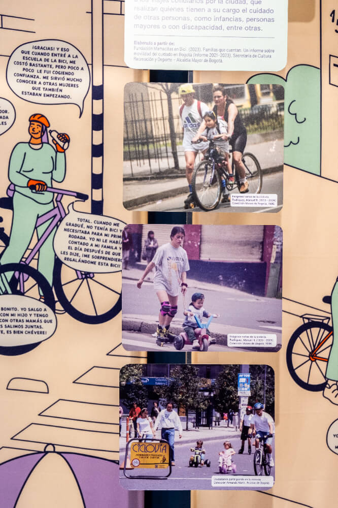 “Esta exposición no es solo el resultado del trabajo institucional, también de las relaciones que tejemos con la ciudadanía. Se construyó a lo largo de 2024 y 2025 con mujeres que tienen diferentes experiencias de vida relacionadas con el uso de la bicicleta. Trabajamos con colectivas de mujeres ciclistas, deportistas, activistas y trabajadoras”, expresó Diego Parra, director del Instituto Distrital de Patrimonio Cultural – IDPC. Su mirada sobre el patrimonio y la ciudad se entrelazó con el pedaleo, con las rutas, con el instante en el que una mujer sobre ruedas reclama su lugar.