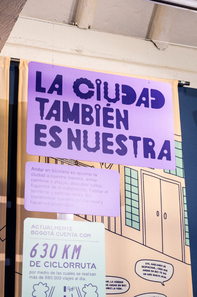 A continuación, quien en su momento fue la gerente del Museo de Bogotá y del Museo de la Ciudad Autoconstruida, Alejandra Romero, tomó la palabra: “Me siento muy orgullosa —de verdad— de poder inaugurar este espacio y de dar estas palabras, porque creo que es muy importante agradecerles por permitirnos pensar opciones también para las mujeres en la ciudad. Opciones para talleres en conjunto, para talleres colectivos, para ser mujeres deportistas. Opciones para pensar también en formas distintas de vestir, de pertenecer a la ciudad. De habitar este territorio que es de todas”.