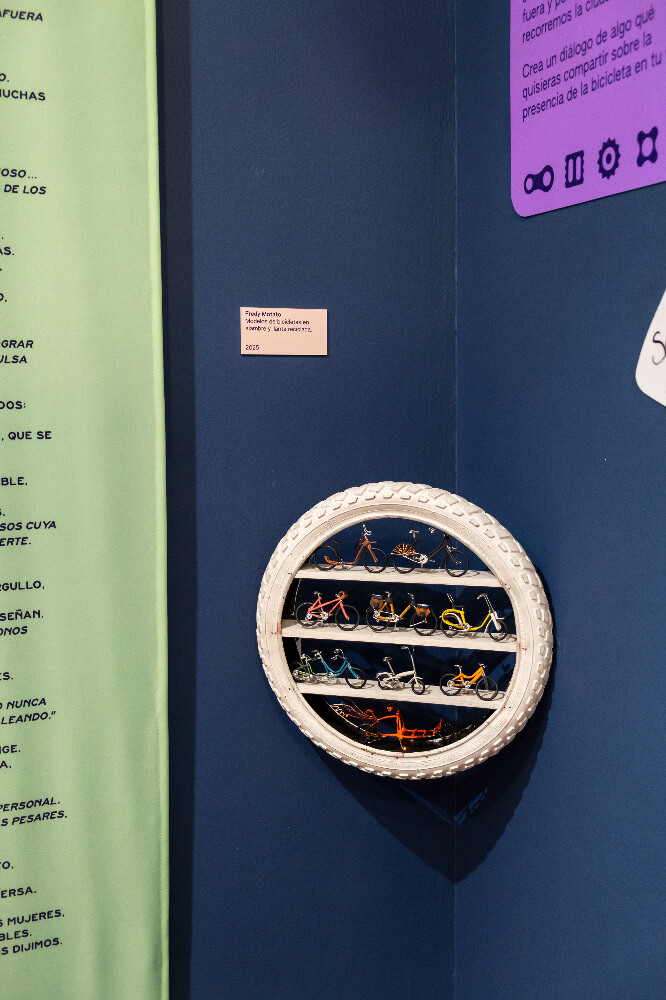 Esta muestra, levantada a muchas manos y muchas voces, invita a cuestionar cómo habitamos la ciudad y de qué forma las mujeres han reclamado ese espacio —antes en sombra, ahora en pedal—.