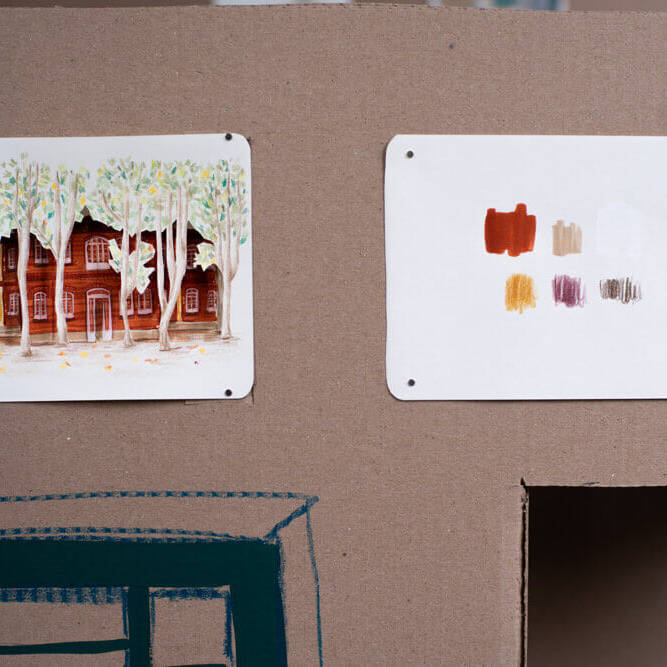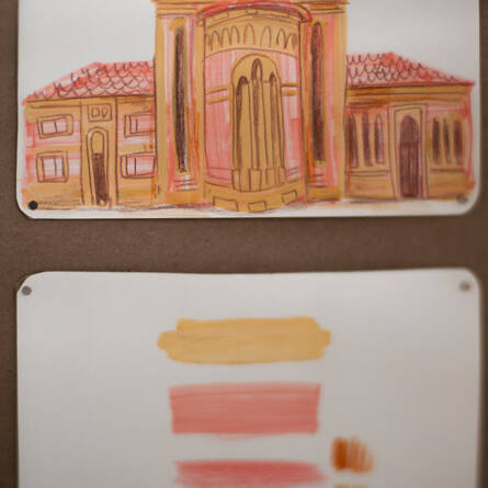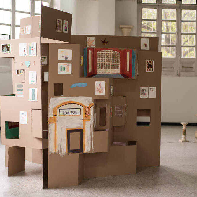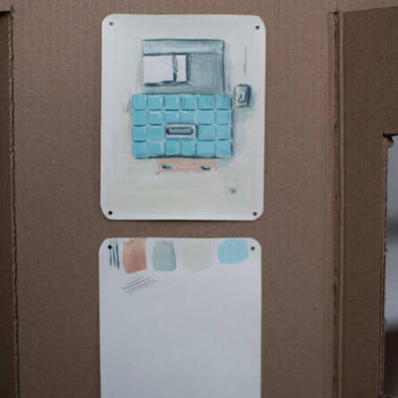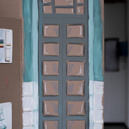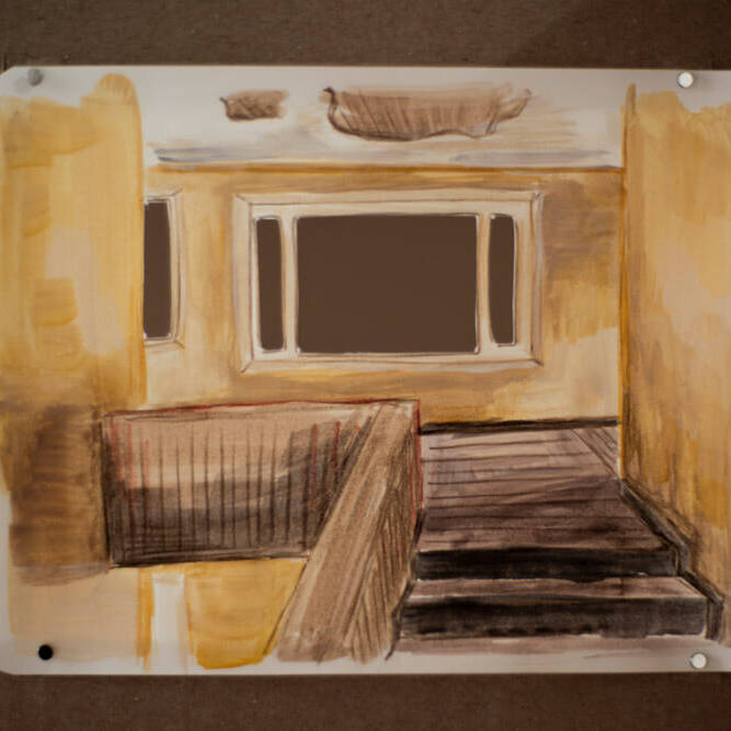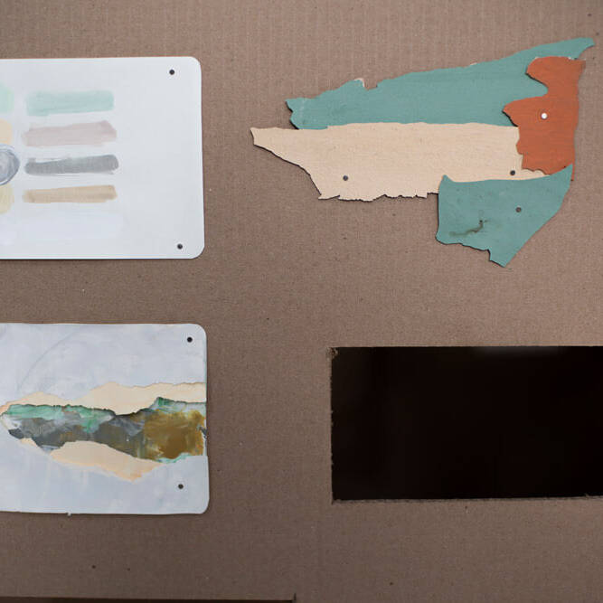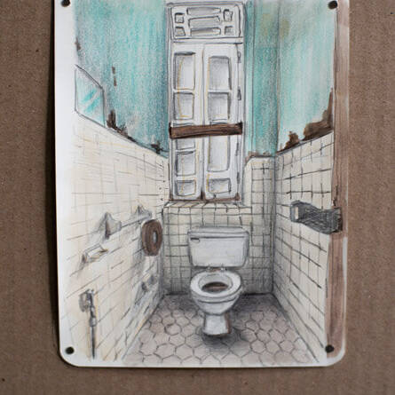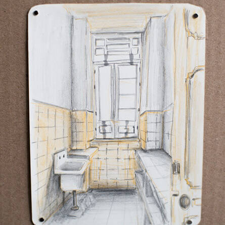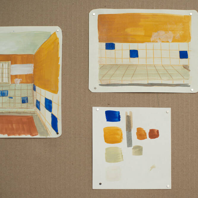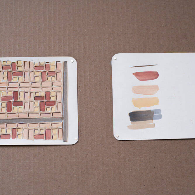 Es un espacio dentro de un espacio, es una estructura inspirada en las paletas de color de los pabellones del hospital. Atravesando por habitaciones y corredores encontré las calas estratigráficas en las paredes.