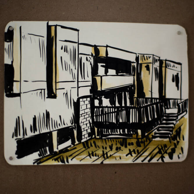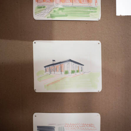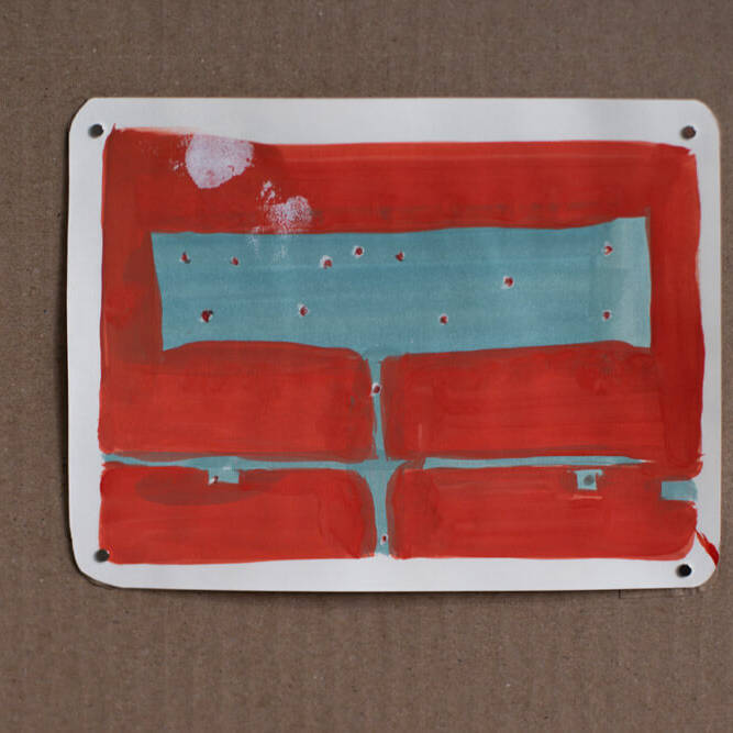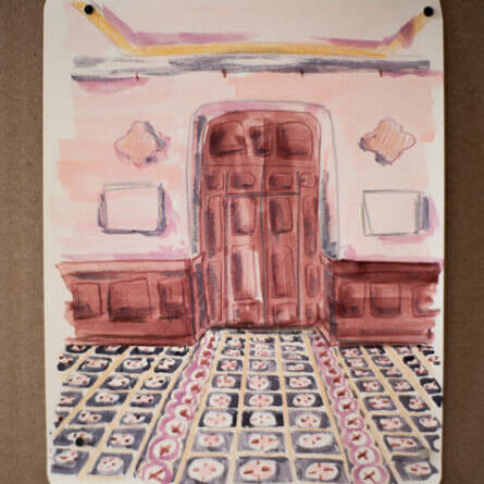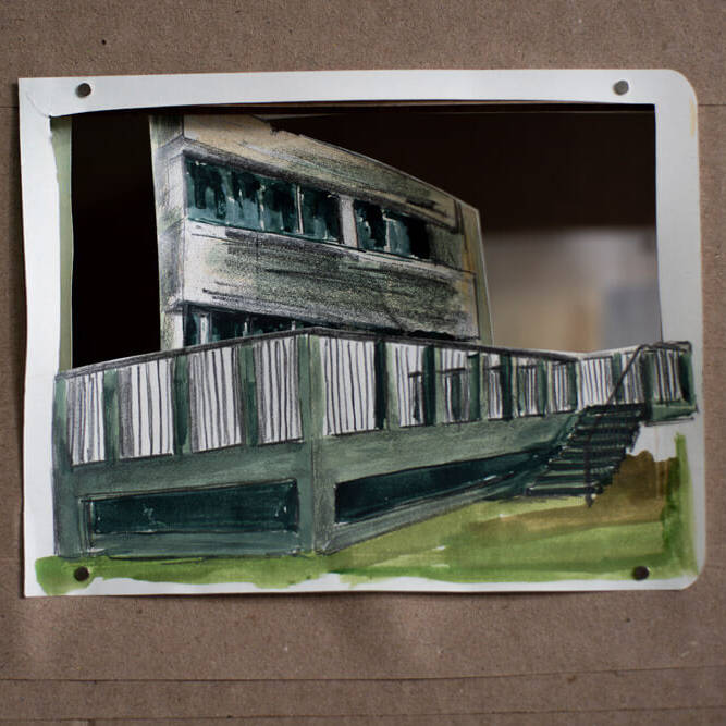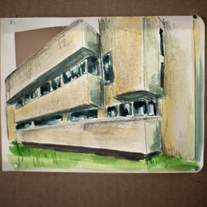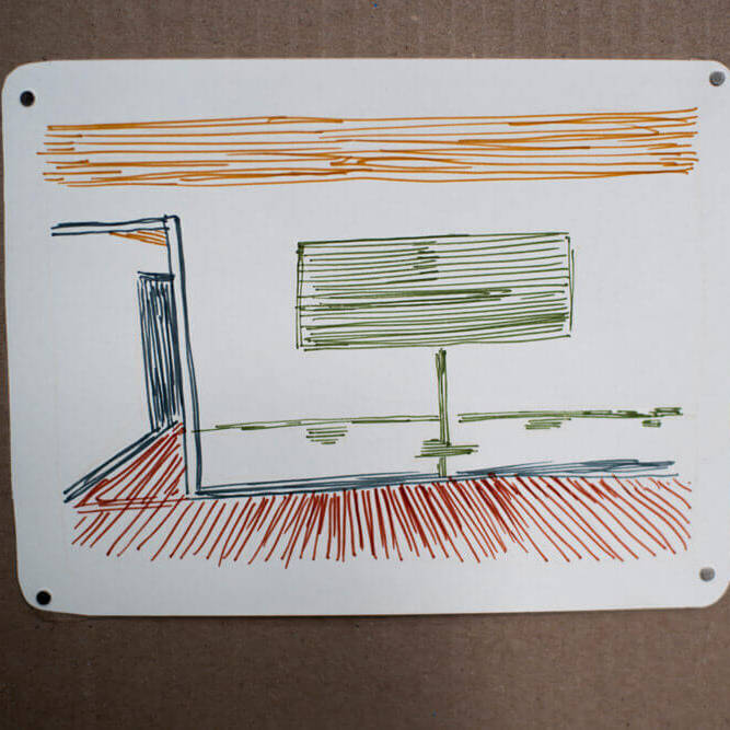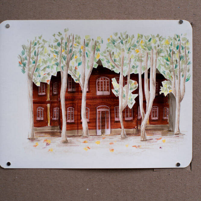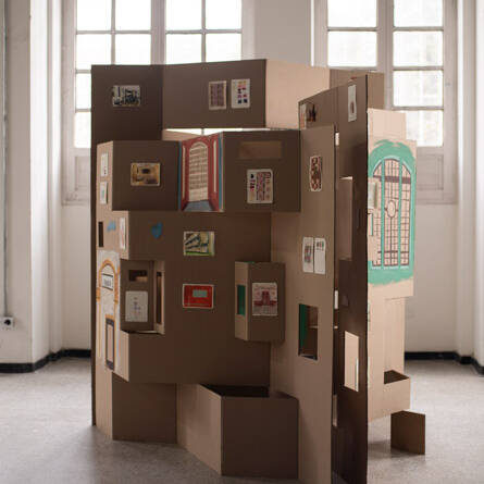 Es un espacio dentro de un espacio, es una estructura inspirada en las paletas de color de los pabellones del hospital. Atravesando por habitaciones y corredores encontré las calas estratigráficas en las paredes.