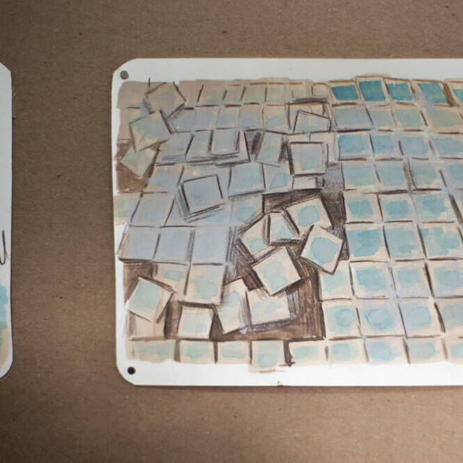 Las calas estratigráficas son la representación visual del análisis de los materiales que hacen parte de un edificio durante años (capas de pintura, lacas, barnices, muros, cementos, ladrillos, etc). Son exactamente estad capas: visuales, históricas, arquitectónicas, pictóricas, funcionando como un palimpsesto tridimensional.